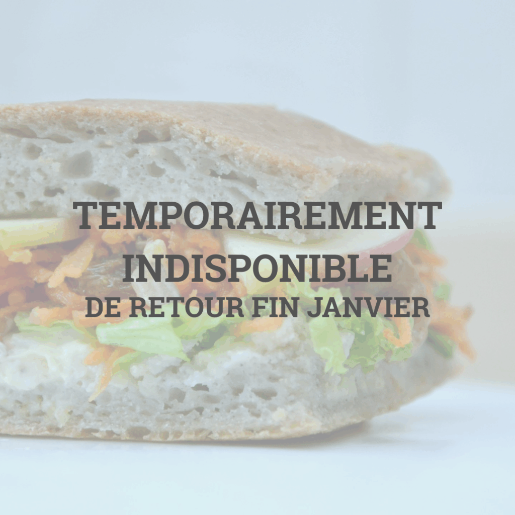 Pain aux graines, courgettes marinées, tomates séchées, houmous de pois chiche au basilic. Allergène : sésame. 5,10€